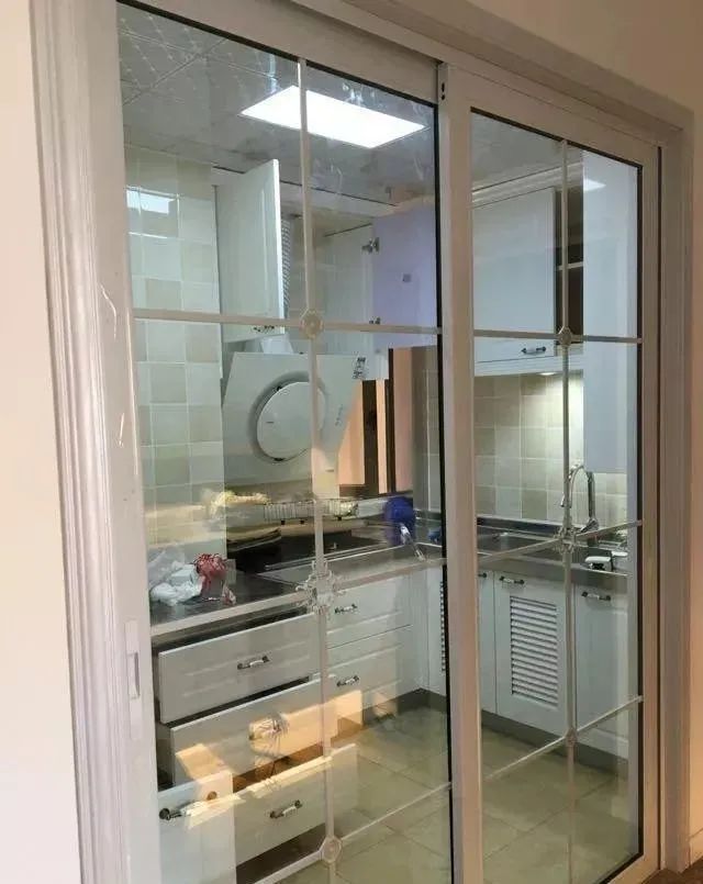 厨房的设计也是我们非常满意的部分。我们选择了通透的玻璃推拉门,既节省空间,又能让厨房的光线更加充足。厨房内部,虽然空间不大,但我们充分利用了每一寸空间,装满了柜子,提供了充足的收纳空间。同时,橱柜的台面采用了大理石材质,既美观又易于清洁。