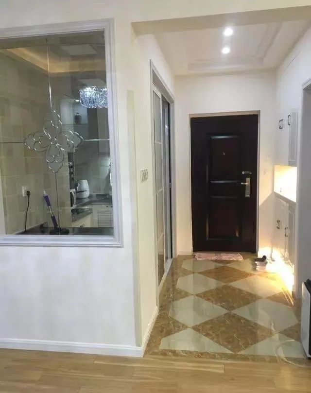 走进新家,首先映入眼帘的是玄关区域。地面采用了菱形铺设的瓷砖,颜色相间搭配,既美观又耐用。玄关的一边墙壁上,我们设计了嵌入式的鞋柜,紧邻着书房,方便实用。另一边是厨房,与餐厅之间的墙壁上,我们安装了一扇窗户,增加了空间的通透感。